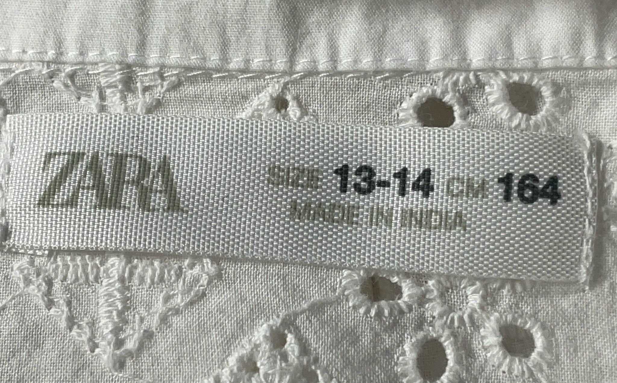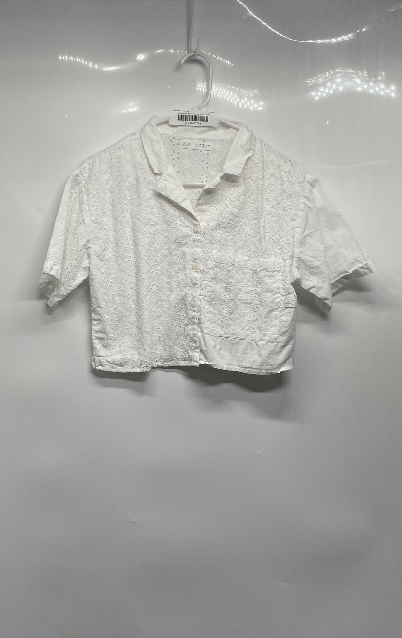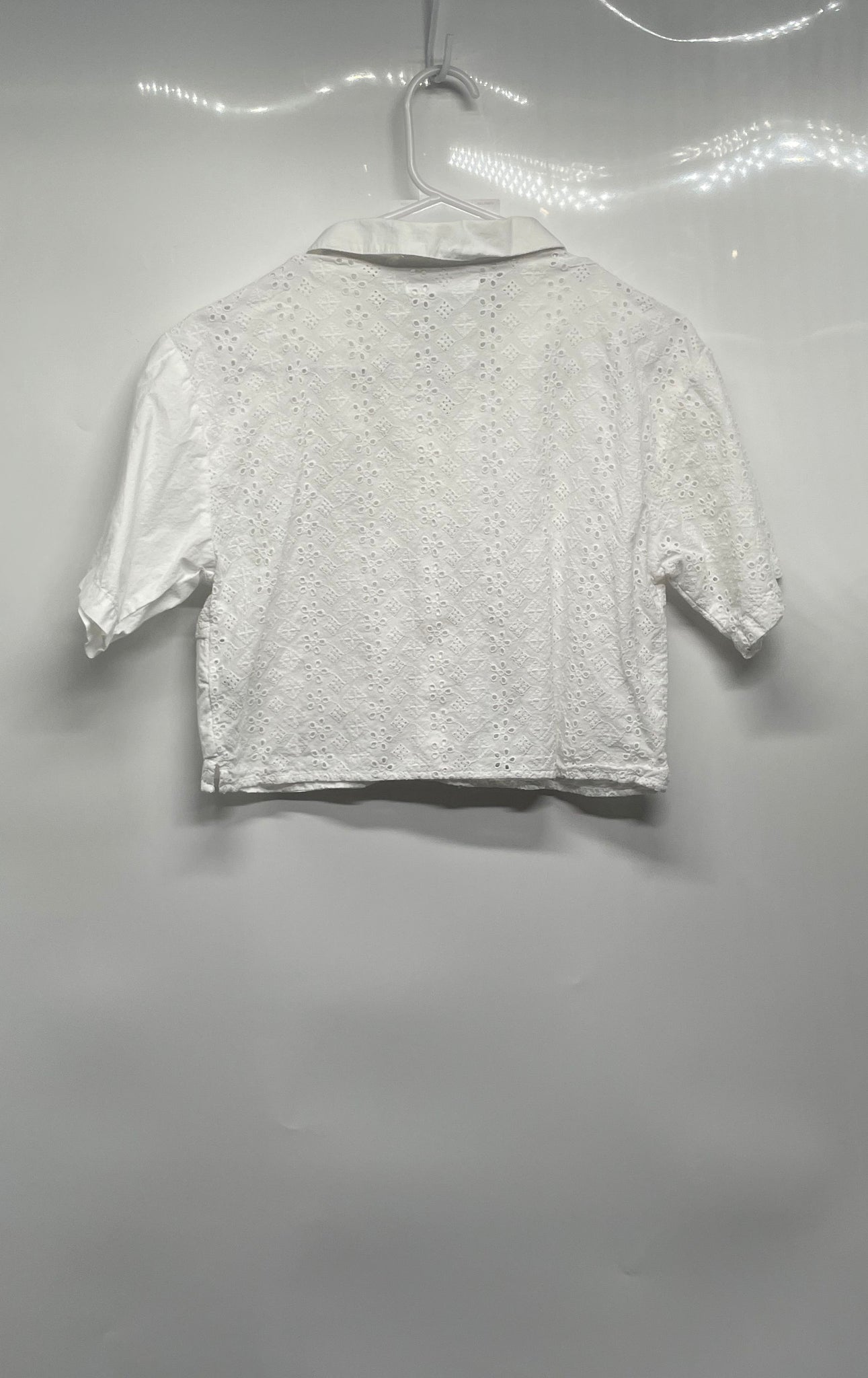 - Description: Zara Girls White Eyelet Short Sleeve Collared Cropped Button-Up Shirt Size 13-14