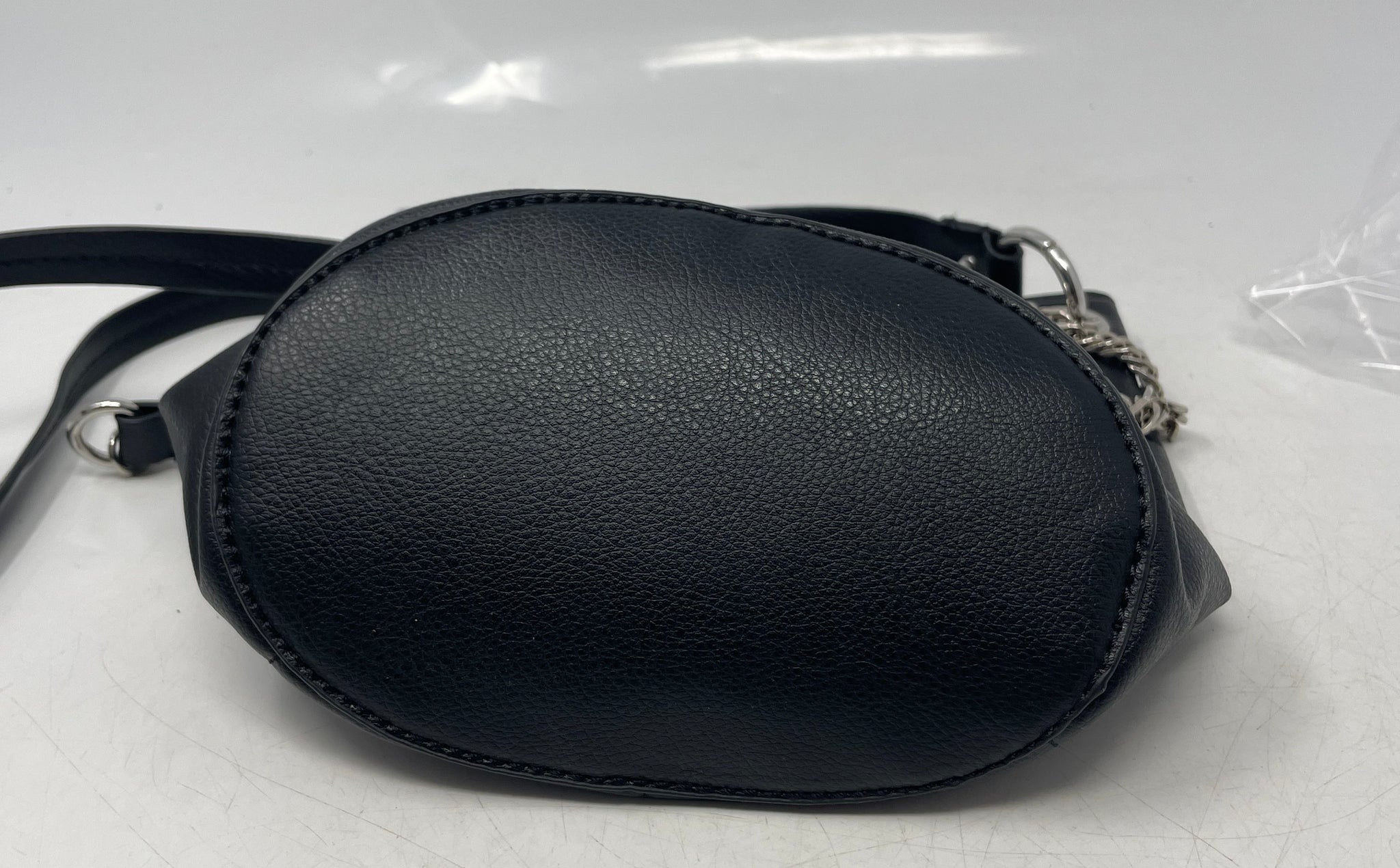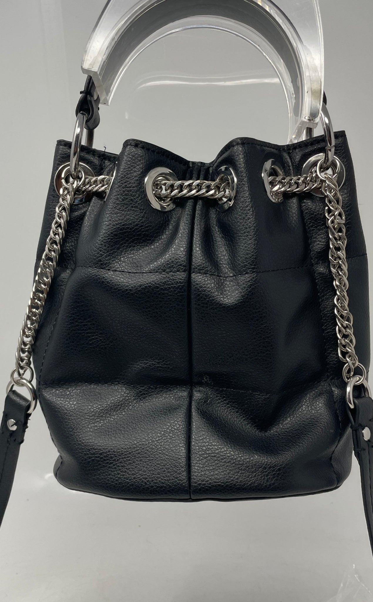 - Description: Zara Womens Black Faux Leather Chain Shoulder Strap Bucket & Drawstring Bag