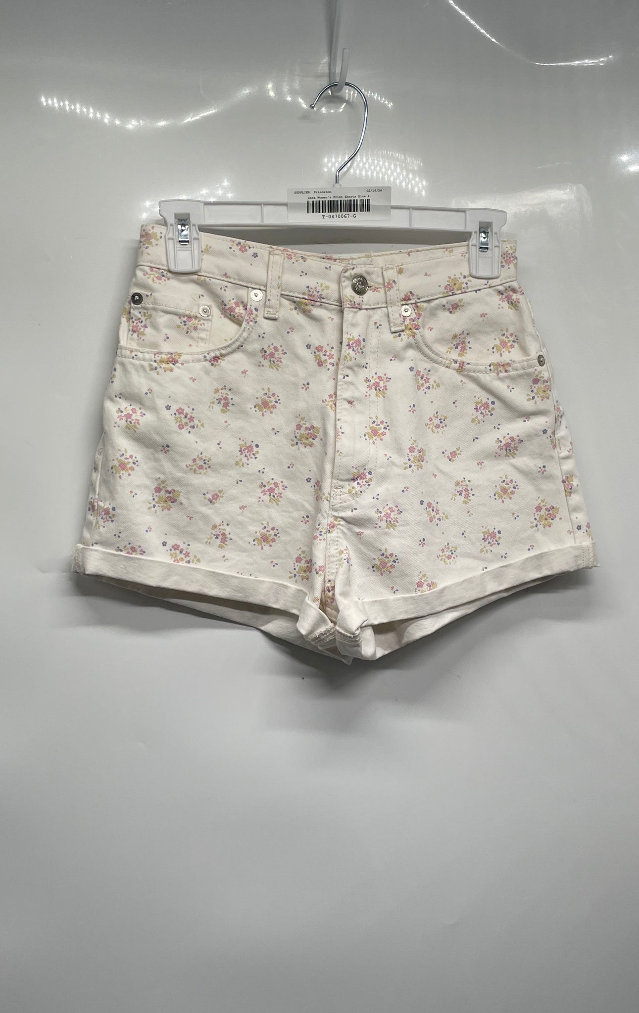 - Description: Zara Womens White Floral Cotton Flat Front 5-Pocket Design Bermuda Shorts Size 4